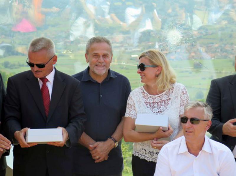 Spomen-obilježje Slomljeni pejzaž otkrili su glavni ravnatelj Hrvatske radiotelevizije Goran Radman i gradonačelnik Hrvatske Kostajnice Tomislav Paunović u nazočnosti ministra hrvatskih branitelja Predraga Matića, zagrebačkoga gradonačelnika Milana Bandića, supruge Gordana Lederera, zaposlenika Hrvatske radiotelevizije i brojnih drugih uzvanika.