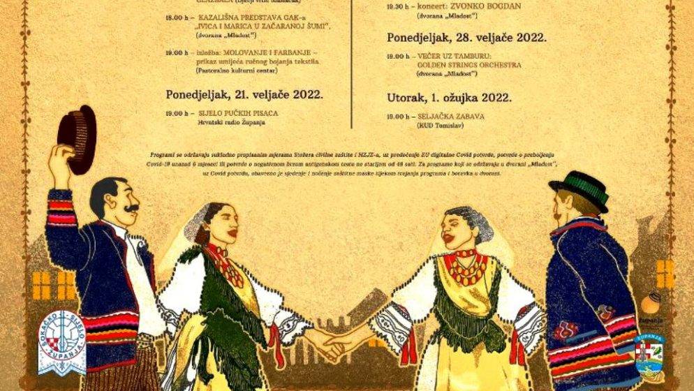Pozivamo vas na 55. Šokačko sijelo čija je tradicija zakoračila već u peto desetljeće, koje će se održati sukladno propisanim mjerama Stožera civilne zaštite i HZJZ-a, uz predočenje EU digitalne Covid potvrde, potvrde o preboljenju Covid-19 unazad 6 mjeseci ili potvrde o negativnom brzom antigenskom testu, ne starijem od 48 sati.