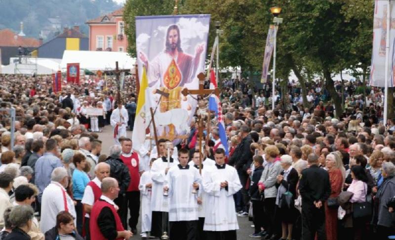 ‘O da bude radost među nama, što smo krvlju Kristovom oprani’ pjevalo je mnoštvo hodočasnika prateći svečanu procesiju s pokaznicom Presvete Krvi kojom je započelo središnje slavlje na Svetu nedjelju 7. rujna u svetištu Predragocjene Krvi Kristove u Ludbregu. Oko zavjetne kapele Hrvatskog sabora sabralo se 60-tak tisuća hodočasnika iz svih krajeva Hrvatske i inozemstva sudjelujući na euharistijskom slavlju koje je predvodio predsjednik Hrvatske biskupske konferencije zadarski nadbiskup Želimir Puljić u zajedništvu s biskupom domaćinom Josipom Mrzljakom i 50-tak svećenika.