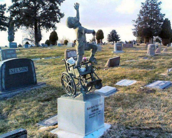Upravo zbog toga, spomenik na groblju za Matthewa razlikuje se od običnih. Njegov otac, Ernest dizajnirao ga je u liku Matthewa. Statua simbolizira oslobođenje, Matthewa koji se riješava invalidskih kolica i ide prema nebu, na ljepše mjesto.