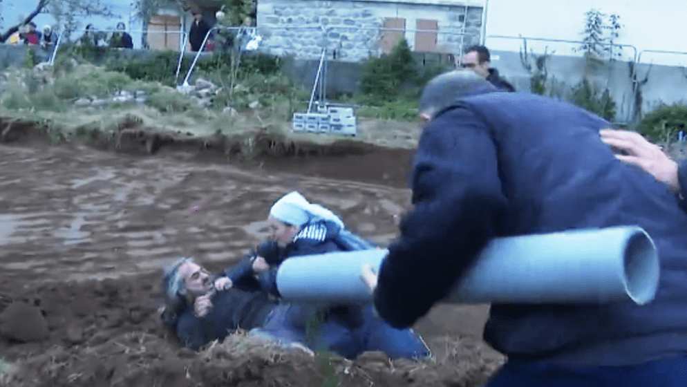 Énorme ! La bonne sœur qui plaque un écologiste… du grand spectacle en Ardèche où des religieuses défendent le chantier d’un futur centre religieux face aux militants qui bloquent à cause de l’impact sur l’environnement.