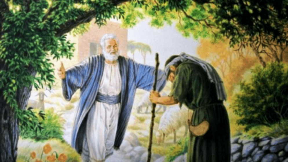 Nato im Isus kaza ovu prispodobu: Čovjek neki imao dva sina. Mlađi reče ocu: ’Oče, daj mi dio dobara koji mi pripada.’ I razdijeli im imanje. Nakon nekoliko dana mlađi sin pokupi sve, otputova u daleku zemlju i ondje potrati svoja dobra živeći razvratno. Kad sve potroši, nasta ljuta glad u onoj zemlji te on poče oskudijevati. Ode i pribi se kod jednoga žitelja u onoj zemlji. On ga posla na svoja polja pasti svinje. Želio se nasititi rogačima što su ih jele svinje, ali mu ih nitko nije davao. Došavši k sebi, reče: ’Koliki najamnici oca moga imaju kruha napretek, a ja ovdje umirem od gladi! Ustat ću, poći svomu ocu i reći mu: ’Oče, sagriješih protiv Neba i pred tobom! Nisam više dostojan zvati se sinom tvojim. Primi me kao jednog od svojih najamnika. ’Usta i pođe svom ocu. Dok je još bio daleko, njegov ga otac ugleda, ganu se, potrča, pade mu oko vrata i izljubi ga. A sin će mu: ’Oče! Sagriješih protiv Neba i pred tobom! Nisam više dostojan zvati se sinom tvojim.’ A otac reče slugama: ’Brzo iznesite haljinu najljepšu i obucite ga! Stavite mu prsten na ruku i obuću na noge! Tele ugojeno dovedite i zakoljite, pa da se pogostimo i proveselimo jer sin mi ovaj bijaše mrtav i oživje, izgubljen bijaše i nađe se!’ I stadoše se veseliti.