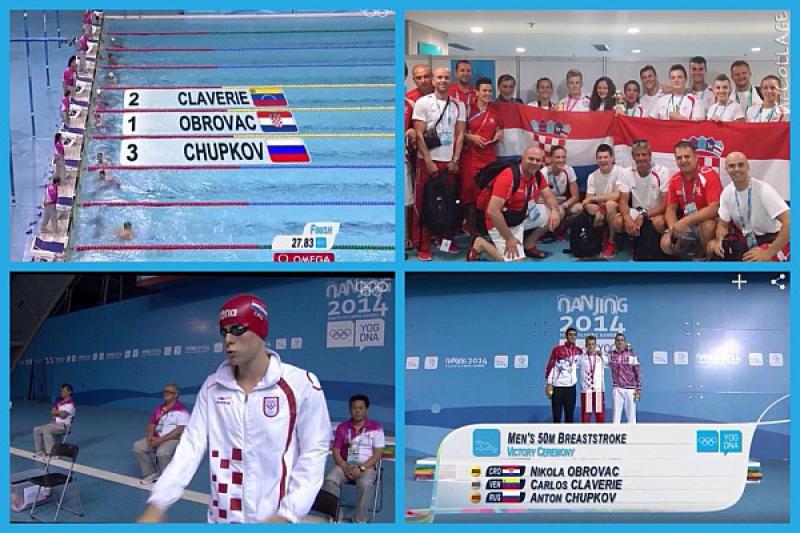 Mladi, 16-godišnji hrvatski plivač Nikola Obrovac osvojio je zlatnu medalju u disciplini 50 m prsno na Olimpijskim igrama mladih u kineskom Nanjingu.