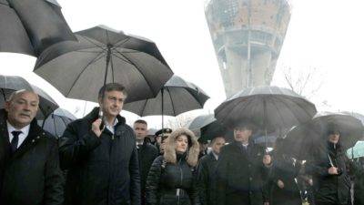 U spomen na hrvatske branitelje i civile poginule u srpskoj agresiji na Vukovar godine 1991. vijence su podno spomen-obilježja na Memorijalnom groblju