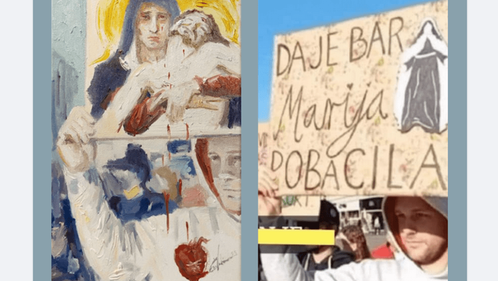 O čovječe dragi, ova slika moja je molitva za tvoje obraćenje, da spoznaš tu Ljubav za koju si poželio da bude pobačena. Ljubav koja nije ljubljena. Kako samo ta Ljubav smeta đavlu. Dragi čovječe, ne znam jesi li svjestan da se tim natpisom rugaš sebi samome?