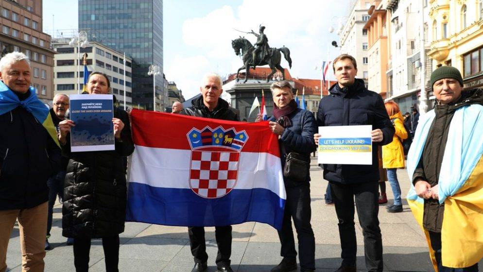 Kao podrška i izraz solidarnosti s ukrajinskim narodom zbog agresije Rusije na tu zemlju, u Zagrebu je na glavnom gradskom trgu uz nazočnost nekoliko stotina građana počeo skup u organizaciji Hrvatskog helsinškog odbora (HHO) i Zajednice Ukrajinaca Grada Zagreba.