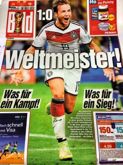 ‘Dieser Titel ist für die Ewigkeit – im Maracanã den Titel zu holen, das ist einmalig. Es waren zehn Jahre harte Arbeit. Die Mannschaft hat sich in den Jahren immer verbessert, nur die deutschen Tugenden hätten nicht mehr gereicht, wir haben auch spielerisch zugelegt, das befriedigt mich sehr. Die Spieler sind über ihre Grenzen gegangen und haben so viel gegeben wie noch nie, um das mitzunehmen, was sie noch nie hatten. Ich habe Mario Götze gesagt: ‘Zeig der Welt, dass du besser bist als Messi’ – sagte Bundestrainer Joachim Löw für Spiegel-Online.