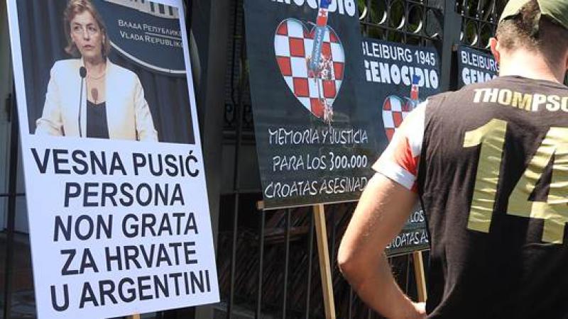 Argentinski Hrvati su u nedjelju u Buenos Airesu prosvjedovali zbog izjava potpredsjednice Sabora RH Vesne Pusić o Bleiburgu. Pusić su, kako je i najavljeno prošli tjedan, proglasili nepoželjnom osobom u hrvatskoj zajednici u Argentini te predložili njen kazneni progon zbog ‘opravdanja genocida’.