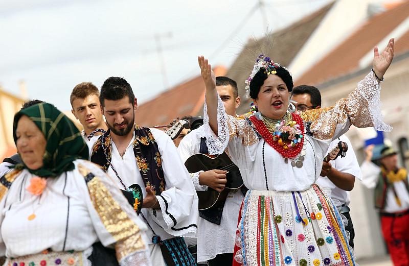 ‘Nek’ se čuje odavde do Save – 50. vezovi se slave’, pjevali su u čast jubileju smotre članovi KUD-a Šokadija iz Strizivojne pokraj Đakova. Predstavnici svih folklornih skupina izveli su pred katedralom veliko šokačko kolo.