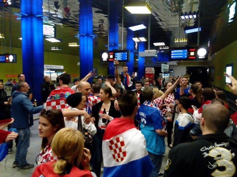 Kako nam javlja čitatelj, u U-bahnu se, kako prije, tako i poslije utakmice, čulo samo ‘U boj, u boj’, a sretni hrvatski navijači poslikali su se nakon pobjede i s njemačkim policajcima.