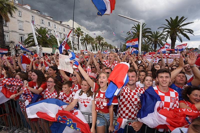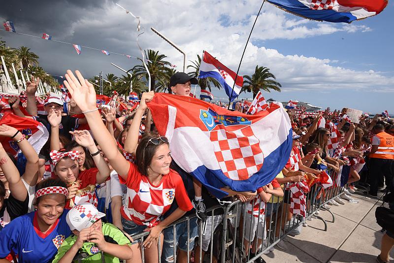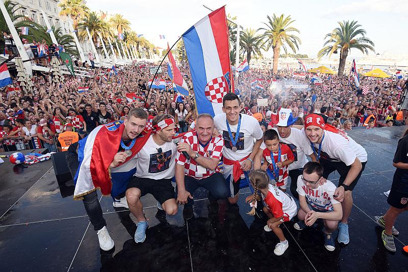 Split je u utorak predvečer dočekao nogometne reprezentativce iz svoje županije Lovru Kalinića, Ivana Strinića, Filipa Bradarića, Ivana Perišića i Antu Rebića, koji su oko 18 sati stigli na prepunu Rivu.