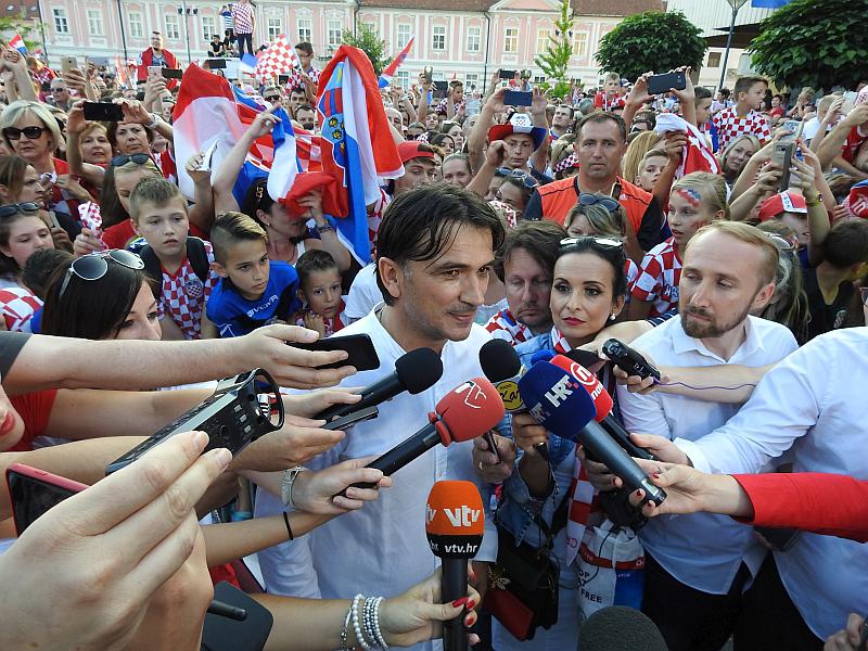 Veličanstven doček izborniku Zlatku Daliću i dijelu stručnog stožera hrvatske nogometne reprezentacije priređen je u utorak navečer u Varaždinu, gdje je Kapucinski trg bio premali da bi primio sve one koji su ih željeli pozdraviti pa su tisuće ljudi ispunile i okolne ulice.