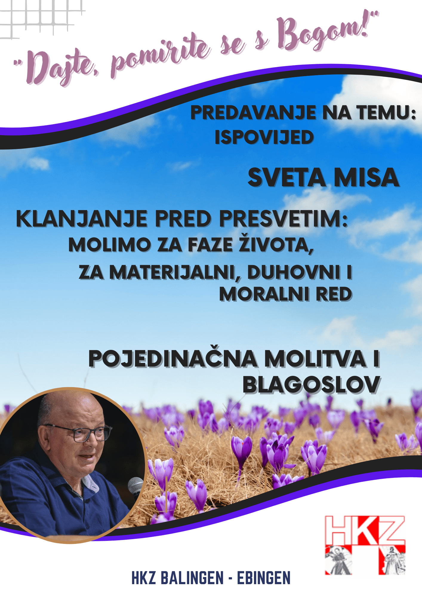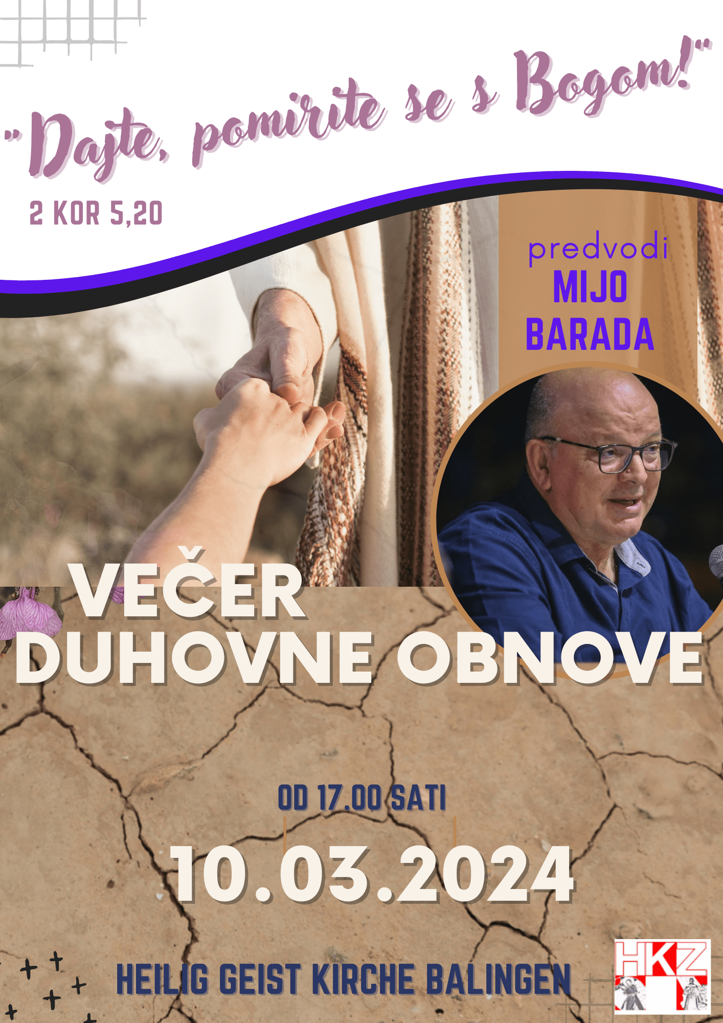 U nedjelju, 10. ožujka od 17 sati u crkvi Svetog Duha u njemačkom gradu Balingenu održati će se duhovna obnova koju će predvoditi Mijo Barada.