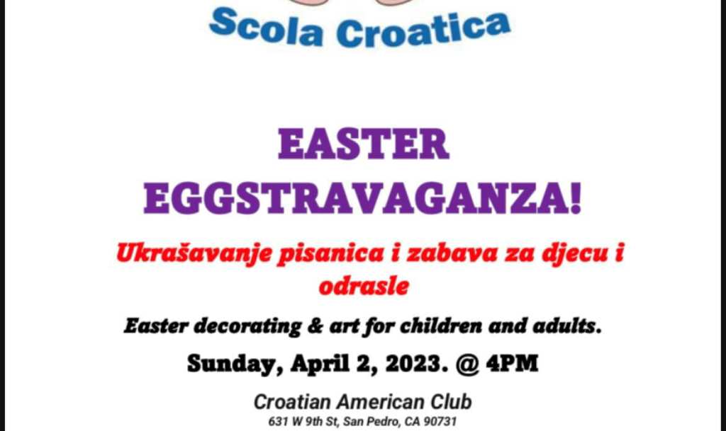 Iz Hrvatskog-američkog kluba u San Pedru stiže poziv na “The 1st Croatian easter eggstravaganz”.