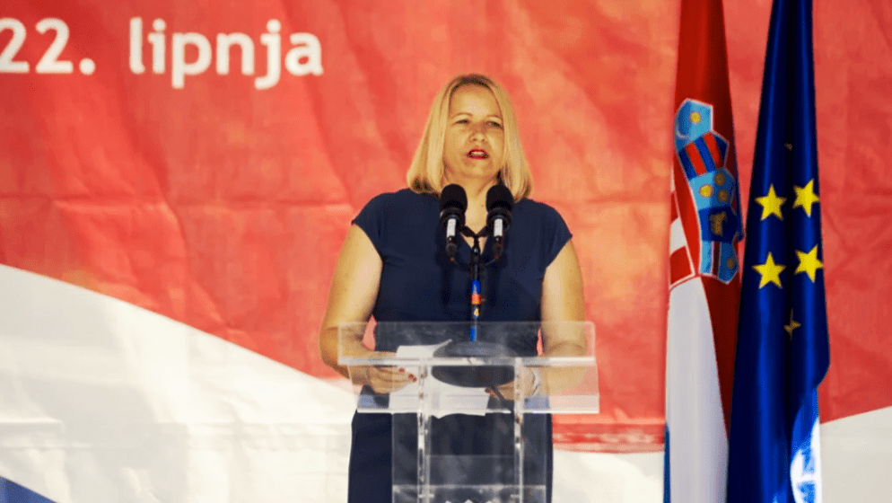 Osumnjičena je 22. lipnja 2023. tijekom obilježavanja Dana antifašističke borbe u Spomen – parku Brezovica svojim govorom, kao izaslanica predsjednika RH Zorana Milanovića, iznijela niz kleveta, laži i uvreda usmjerenih protiv Hrvatskog naroda, protiv Republike Hrvatske te poglavito protiv hrvatskih branitelja i stradalnika hrvatskog obrambenog Domovinskog rata. U svom govoru, (kao da ga je pisao netko iz Srbije), uz ostalo je istaknula: „Kakva je to država koja drži do sebe i nominalno slavi Dan antifašističke borbe istovremeno može biti pokrovitelj zuluma fašista i filoustaša koji pod krinkom komemoracije navodnim žrtvama Bleiburga zapravo slave i veličaju zločince i najgori kvislinški šljam koji je ikada obitavao u Hrvatskoj“, zatim da se u Bleiburgu pod pokroviteljstvom Hrvatskog sabora slavio „bal vampira“, da „Hrvati nisu normalni“, da Hrvatski sabor financira skupove na kojima se „veličaju okupatori naše zemlje i domaći izdajnici“ i tako dalje i tome slično.