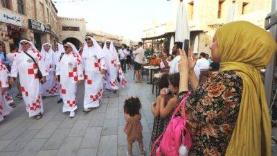 Skupina hrvatskih navijača izazvala je show u središtu Dohe, pojavivši se odjevena u tradicionalne arapsku haljinu