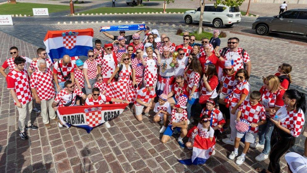 Stotinjak hrvatskih navijača okupilo se jutros oko devet sati po lokalnom vremenu (sedam po hrvatskom) ispred hotela Hilton Doha kako bi priredili još jednu spektakularnu uvertiru u novu utakmicu Vatrenih na Svjetskom prvenstvu, prenose Sporske novosti.