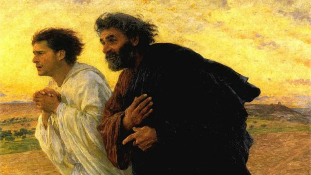 U ono vrijeme, žene otiđoše žurno s groba te sa strahom i velikom radošću otrčaše javiti njegovim učenicima. Kad eto im Isusa u susret! Reče im: ‘Zdravo!’