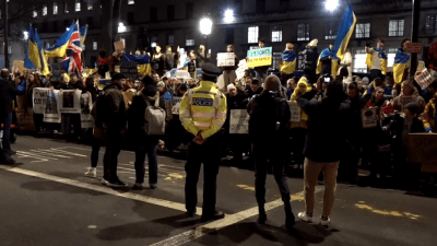 Rusko veleposlanstvo u Londonu zasuto je jajima tijekom prosvjeda protiv ruske invazije na Ukrajinu.
