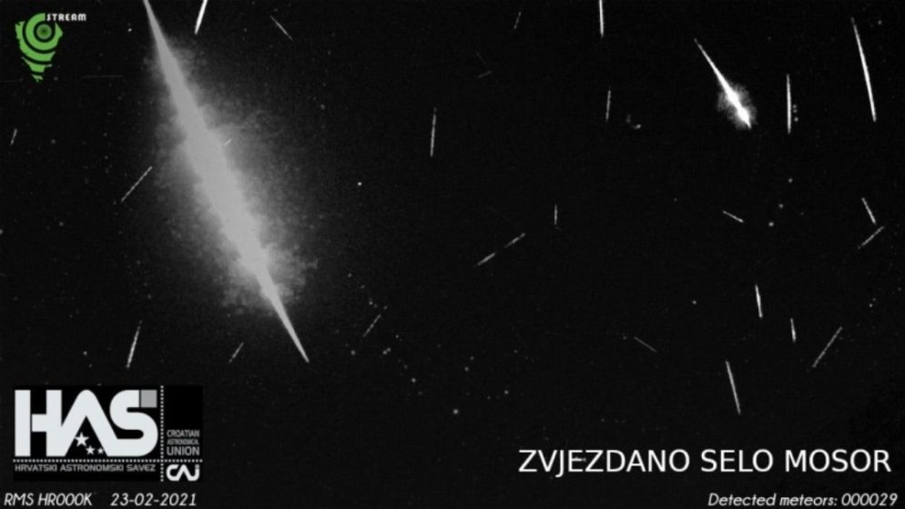 “U noći s 22. na 23. veljače 2021., točnije 23. veljače u 00 sati 00 minuta i 23 sekunde po lokalnom vremenu, kamere Hrvatske meteorske mreže (Global Meteor Network) snimile su vrlo sjajan meteor, bolid nešto slabijeg sjaja od Mjeseca u fazi prve četvrti. Analizom snimaka pokazalo se da je na područje Dalmacije pao meteorit”, priopćio je Hrvatski astronomski savez.