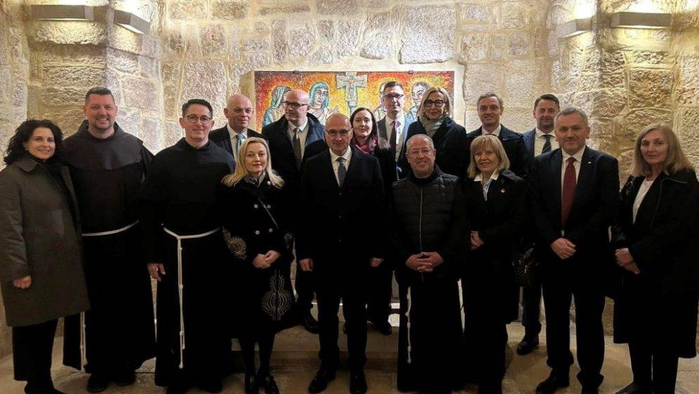 ‘Danas imam posebno zadovoljstvo biti u srcu Svete Zemlje, gdje zajedno svjedočimo povijesnom trenutku – otvorenju i blagoslovu Kapele hrvatskih svetaca i blaženika na Pastirskim poljanama. Ulaganjem u projekte u Betlehemu, nakon izazovnih godina pandemije i rata, želimo lokalnom stanovništvu poslati poruku nade u budućnost, mir i suživot. Ponosan sam što je Hrvatska kapela prva dovršena u nizu od deset nacionalnih kapela, uz palestinsku i španjolsku’, poručio je, između ostalog, ministar Grlić Radman iz Betlehema.