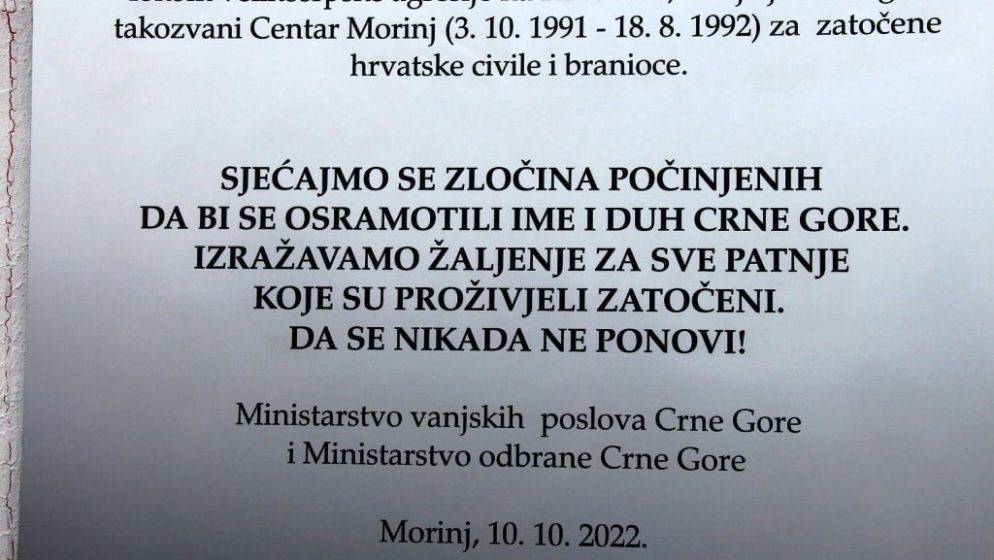 “Nedavni događaji politiziranja spomen-ploče i najavljivanja njenog uklanjanja, na mjestu nekadašnjeg logora Morinj u Crnoj Gori, koja je otkrivena u organizaciji Ministarstva vanjskih poslova Crne Gore i Ministarstva obrane Crne Gore 10. listopada 2022., ne smije obeshrabriti Hrvate u Crnoj Gori”, naveo je MVEP dodajući da su dvojica do jučer ministara Crne Gore Ranko Krivokapić i Raško Konjević argumentirali ispunjenje svih zakonskih uvjeta za postavljanje ploče, pravno i vrijednosno.