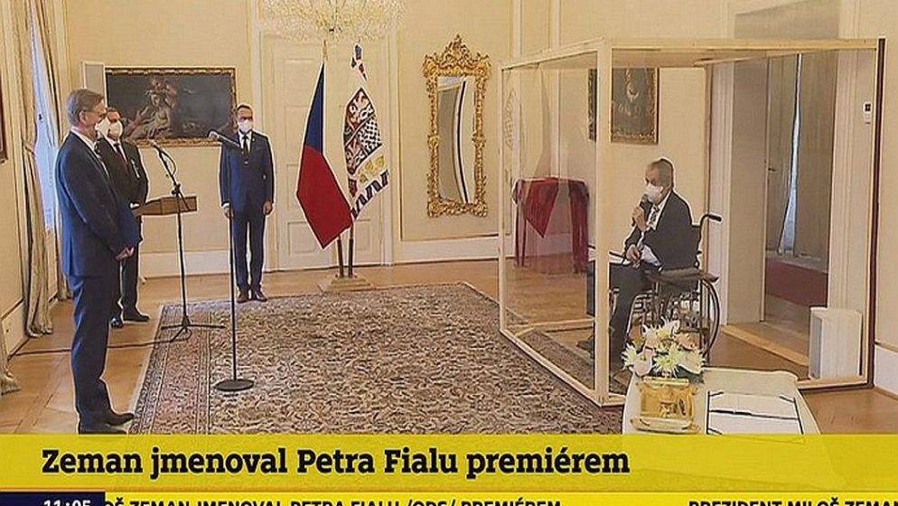 Nesvakidašnji čin odvio se pred kamerama u Češkoj. Novim češkim premijerom imenovan je Petr Fiala, liberalno konzervativan političar. Ništa posebno u tome ne bi bilo da ga nije imenovao češki predsjednik Miloš Zeman iz staklene kutije. Zbog tog imenovanja je u subotu izašao iz bolnice gdje je bio zbog zaraze koronavirusom. Uz pomoć medicinskog osoblja u zaštitnim odijelima predsjednik je došao odraditi svoj posao.
