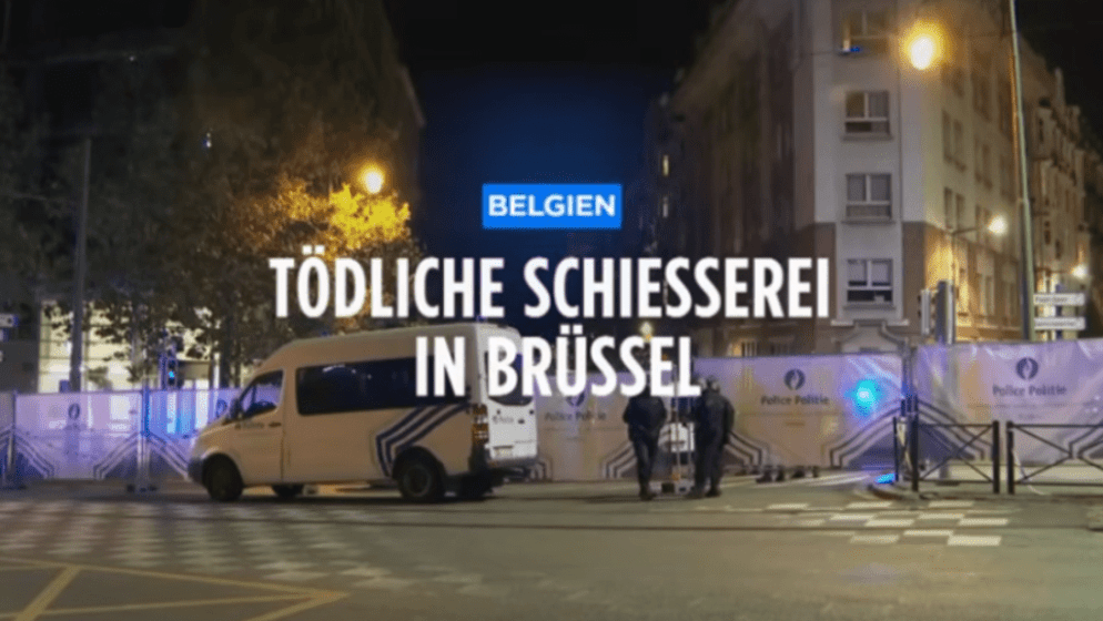 Video snimke briselskog napada u ponedjeljak navečer koje je objavio portal dnevnika Het Laatste Nieuws pokazuju muškarca u narančastoj jakni na skuteru na križanju ulica s puškom iz koje je isprva ispalio pet metaka, a zatim prati ljude koji bježe u zgradu i tada ponovno puca.