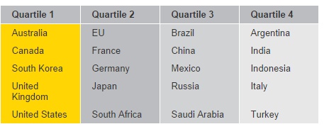 Prema kriteriju dostupnosti novca, vodeće su SAD. One imaju i najrazvijeniju poduzetničku kulturu. Na vrhu kategorije ‘porezi i regulacije’ nalazi se Saudijska Arabija koja pruža najbolje porezne olakšice, najjednostavnije procedure i podršku za pokretanje posla. Najeduciraniji su Francuzi, a najbolju koordiniranu podršku daju Rusi.