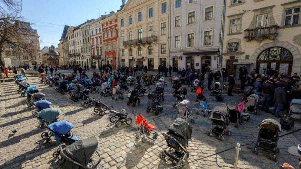 109 dječjih kolica u Lavovu u spomen na djecu žrtve ruskih napada
