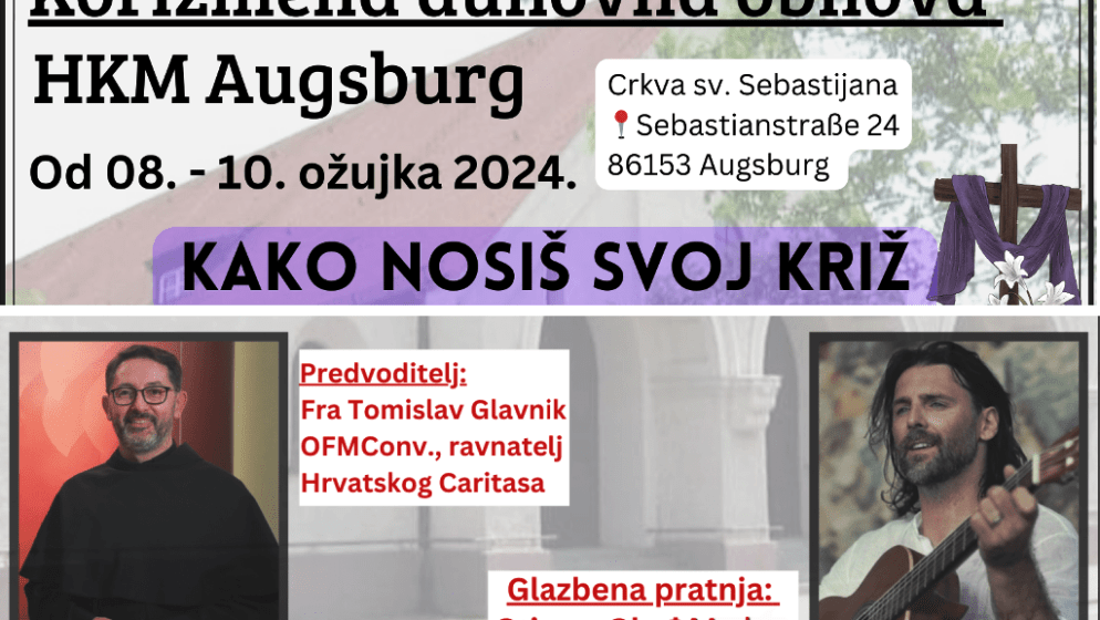 Iseljenički info Najavljujemo U Augsburgu uskoro duhovna obnova fra Tomislava Glavnika pod nazivom ‘Kako nosiš svoj križ’