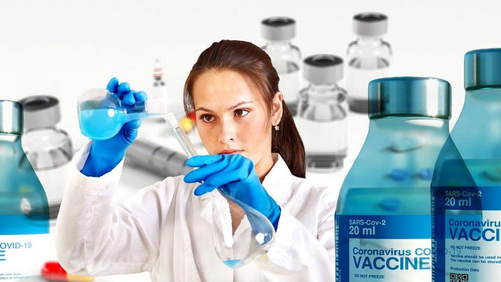 Radnica u njemačkom centru za cijepljenje punila injekcije fiziološkom otopinom