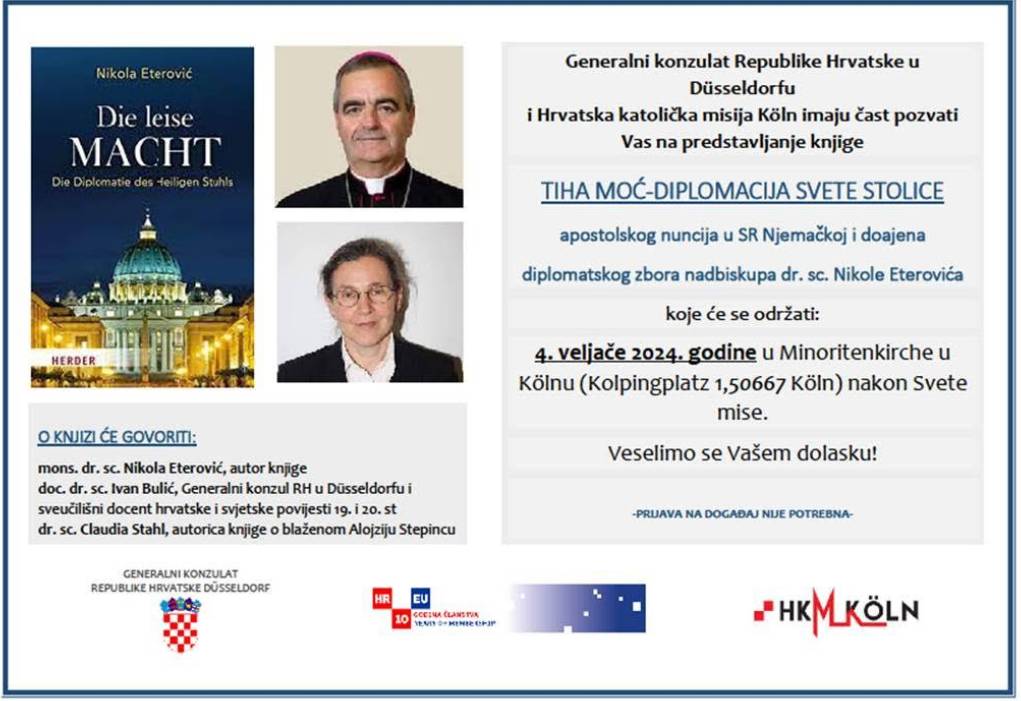 Nakon misnog slavlja, planirano je predstavljanje knjige pod nazivom “Tiha moć – diplomacija Svete Stolice”. Ova značajna knjiga bit će predstavljena od strane uglednih autora dr. Claudie Stahl i dr. Ivana Bulića.