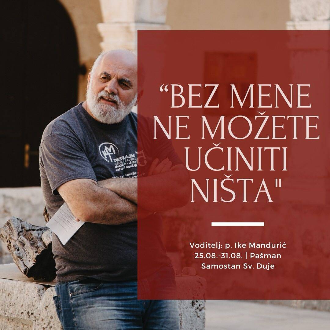 PRUŽI RUKU RATNIČE! – Tjedan branitelja na Pašmanu Dragi prijatelju, poštovani ratniče, brate u Kristu! Čekamo te na Pašmanu, uz plavo more, molitvu, duhovni program u samostanskoj tišini i dobar objed. Prođimo zajedno kroz sjećanje na herojstva i prijateljstva – otvorimo srca za radost u zajedništvu sa suborcima i Bogom – pred mladima tako potrebnim domoljubne inspiracije. Mi branitelji uvijek trebamo nešto posebno – ali i možemo dati nešto posebno. Na sve to imamo pravo, ali i mogućnosti. Očekujemo da će se tijekom ovih tjedan dana molitve, razgovora i promišljanja među nama začeti neka konkretna i domišljena ideja za akciju koju ćemo potom zajedno i provoditi. Program pod nazivom PRUŽI RUKU, RATNIČE traje od nedjelje 1.rujna do subote 7.rujna. Program vode pater Ike, educirani časnici i suradnici Merz-Instituta. Participacija za ovih tjedan dana je od 120 po krevetu, ili 330 po sobi (s bračnim krevetom i kupaonicom) Svima koji niste u mogućnosti izdvojiti sredstva participacije, troškove ćemo pokriti iz fonda koji ćemo prema tome prikupiti. https://forms.gle/i1bXTya4kxqobHa29