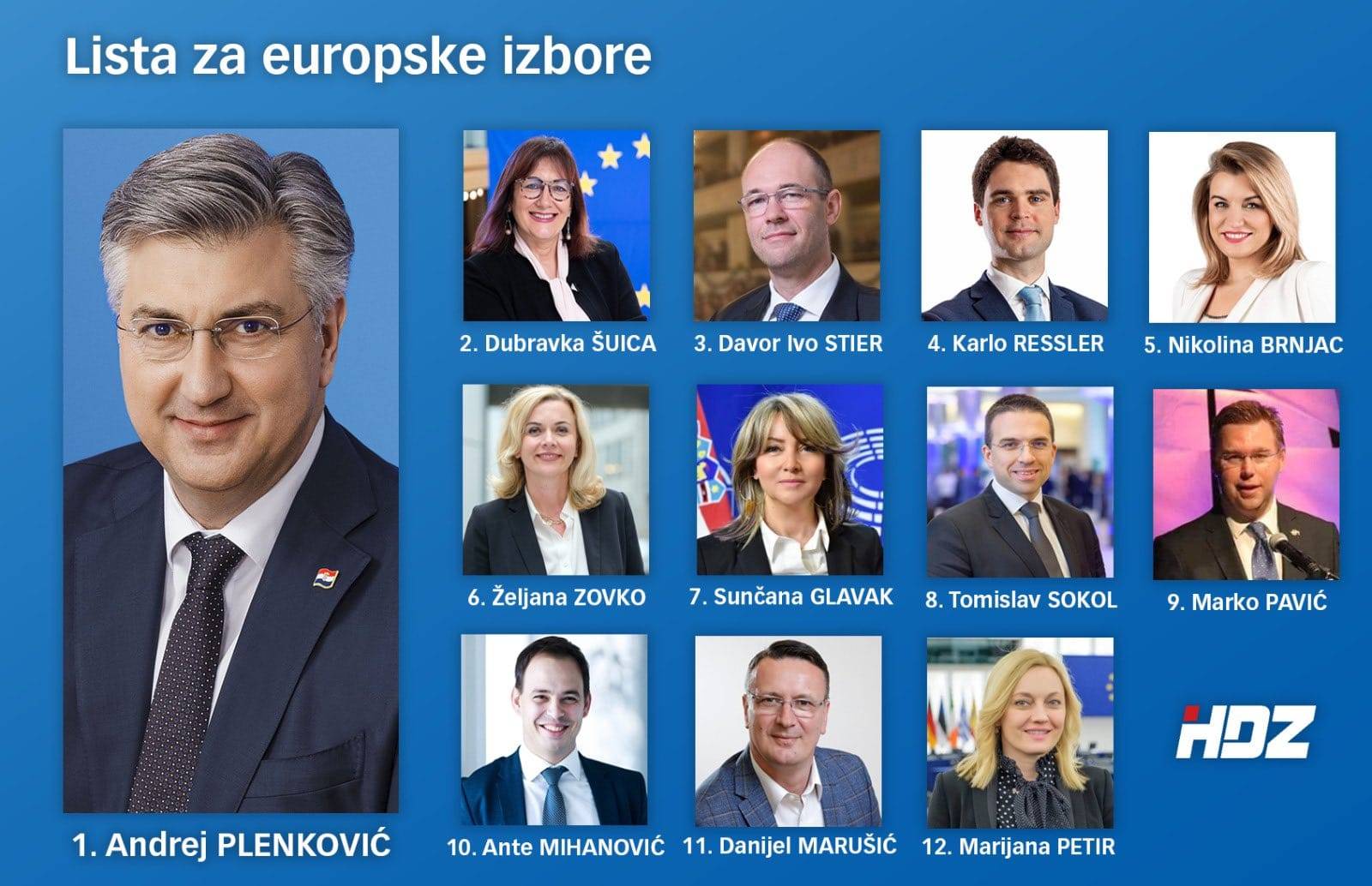Na listi će, redom, biti i aktualna potpredsjednica Europske komisije i potpredsjednica Europske pučke stranke Dubravka Šuica, predsjednik Kluba EPP-a u okviru Parlamentarne skupštine Vijeća Europe Davor Ivo Stier, aktualni zastupnik i voditelj HDZ-ove delegacije u EP-u Karlo Resler, aktualna ministrica turizma i sporta Nikolina Brnjac, potpredsjednica Kluba EPP-a u EP-u i predstavnica HDZ-a BiH Željana Zovko, aktualni zastupnici u EP-u Sunčana Glavak i Tomislav Sokol, bivši ministar regionalnog razvoja i fondova EU Marko Pavić, tajnik županijske organizacije HDZ-a u Splitskoj-dalmatinskoj županiji Ante Mihanović, župan Brodsko-posavske županije Danijel Marušić te bivša europarlamentarna zastupnica Marijana Petir.