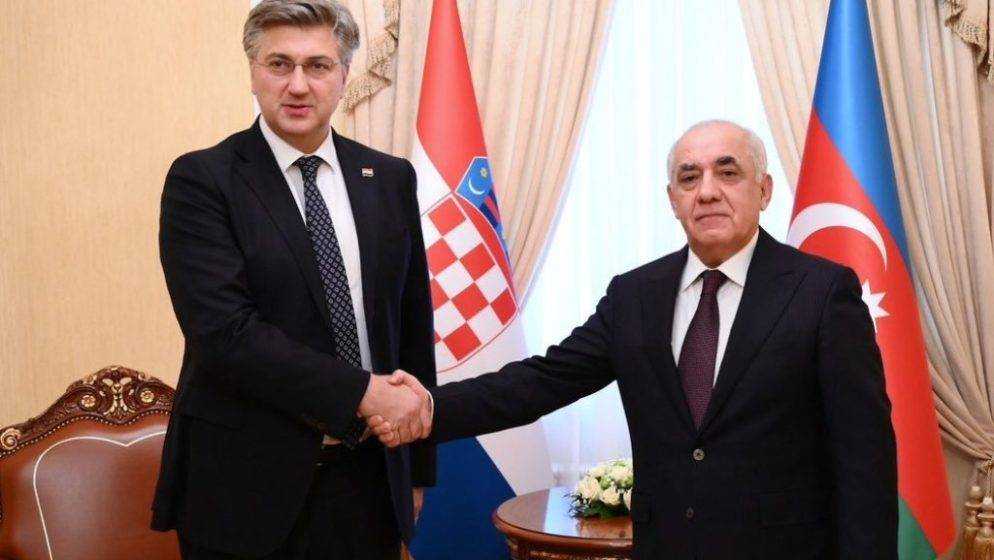 Premijer Andrej Plenković u ponedjeljak je s azerbajdžanskim predsjednikom Ilhamom Alijevim razgovarao o povećanju prisutnosti hrvatskih tvrtki na tržištu te zemlje, o posredovanju Europske unije radi postizanja mirovnog dogovora s Armenijom i hrvatskoj pomoći u razminiranju Azerbajdžana.