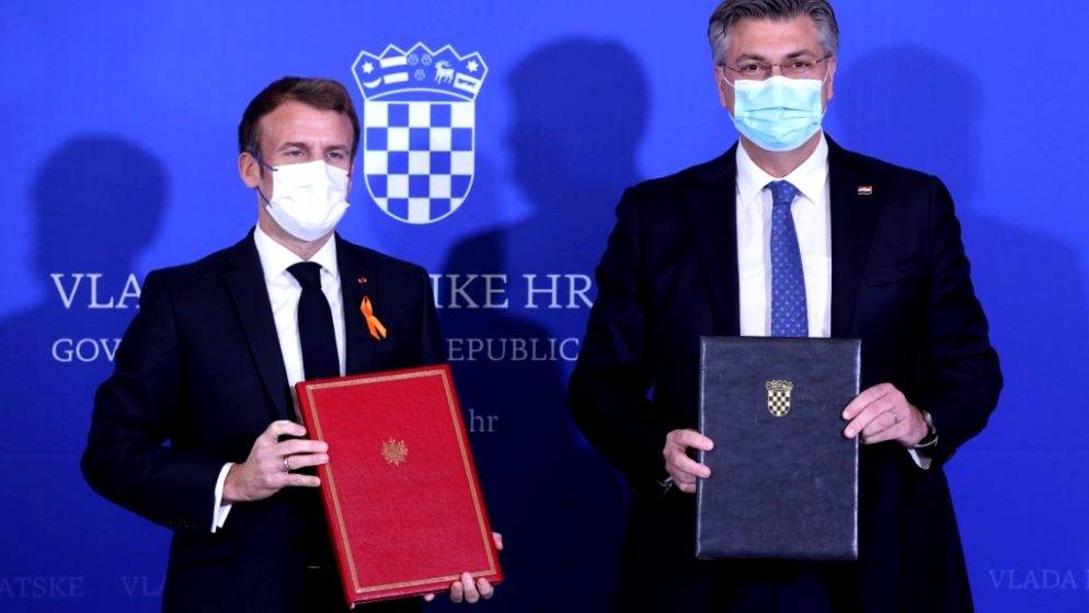 Hrvatski premijer Andrej Plenković i francuski predsjednik Emmanuel Macron potpisali su u četvrtak u Banskim dvorima Sporazum o strateškom partnerstvu koji će dodatno ojačati odnose službenih Zagreba i Pariza.