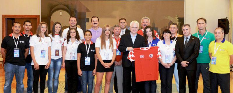 Predsjednik Republike Ivo Josipović primio je sudionike i organizatore Hrvatskih svjetskih igara koje se od 21. do 26. srpnja održavaju u Zagrebu.
