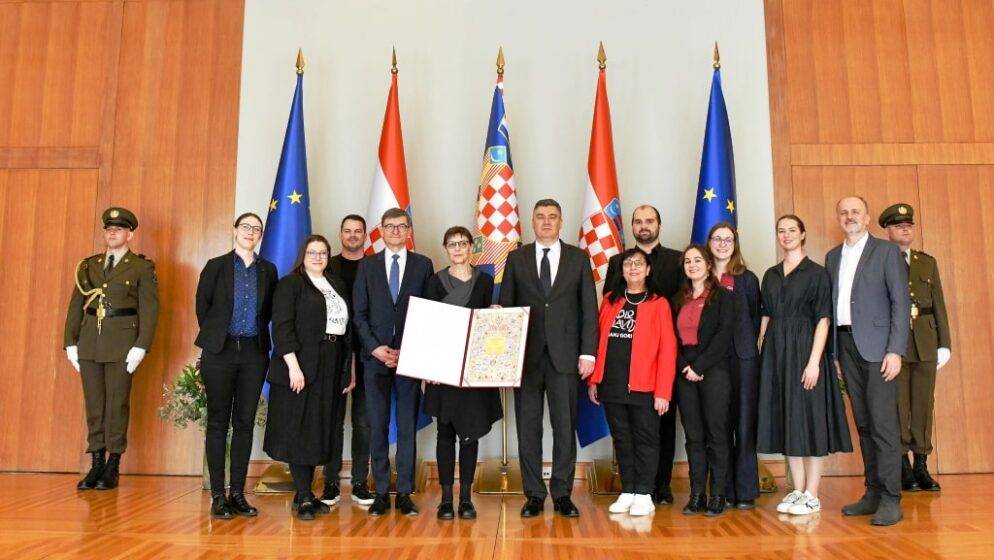 „Želim vam puno uspjeha u daljnjem radu i nastupima u Austriji i izvan Austrije, a na kojima predstavljate tradicijske gradišćanskohrvatske plesove i napjeve“, rekao je predsjednik Milanović uručujući Povelju predsjednici ansambla Gabrielia Novak-Karall.