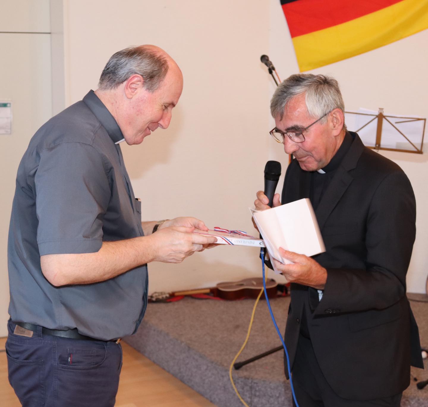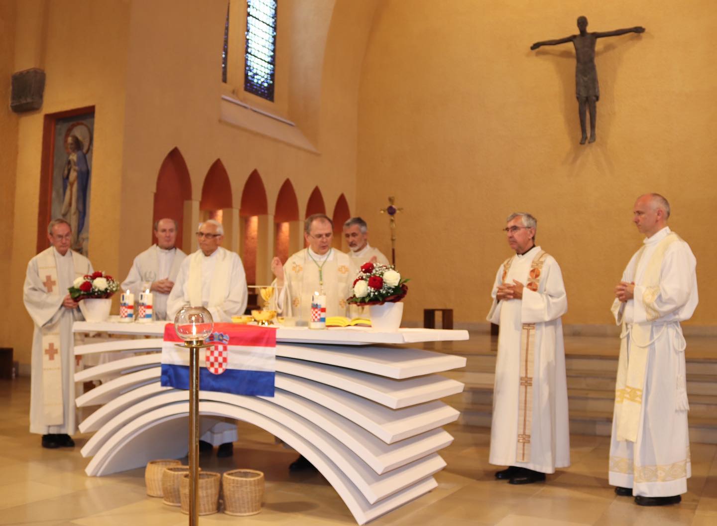 Svečano misno slavlje u tom je povodu u punoj crkvi Sv. Petra Kanizija u Friedrichshafenu predvodio varaždinski biskup mons. Bože Radoš u zajedništvu s voditeljem zajednica vlč. Ilijom Jokićem, delegatom za hrvatsku pastvu u Njemačkoj vlč. Ivicom Komadinom, vlč. dr. Josipom Bošnjakovićem, vlč. Ilijom Krištićem, o. Niklausom Marijom Hoferom te uz asistenciju trajnog đakona Ryszarda (Ricarda) Rzesnya.Misnom slavlju pribivao je i vlč. Harald Kiebler, konzul savjetnik 1. reda Generalnog konzulata Republike Hrvatske u Stuttgartu Ivan Bulaja, Natascha Garvin zadužena za pitanja integracije u Friedrichshafenu te uime sestara Službenica Kristovih iz Wigratzbada s. Anđelka Gegić.