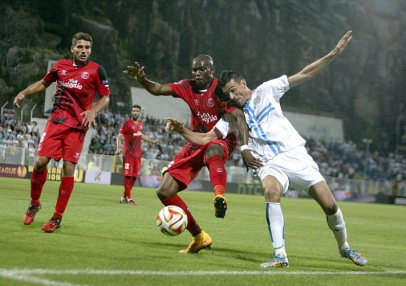 U susretu 2. kola G skupine Europske lige Rijeka je pred 9.500 gledatelja na stadionu Kantrida odigrala protiv branitelja naslova Seville 2-2 primivši drugi pogodak u sudačkoj nadoknadi.