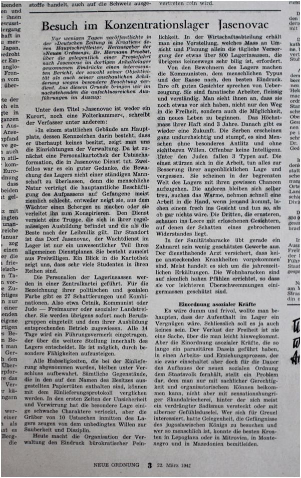 Proebst je bio izdavač njemačkog tjednika u Zagrebu Neue Ordnung i glavni ravnatelj Deutsche Zeitunga u našem glavnom gradu. To mu nije smetalo da odmah po završetku rata započne brzu karijeru u vodećim njemačkim novinama i izvještajnim institucijama. Posebno je bio udvornički njegov izvještaj o Jasenovcu koji prema njemu nije bio sanatorij ali ni mučilište, pri čemu taj logor pridonosi ne samo isključivanju opasnih protivnika nego služi i produktivnosti inače neproduktivnih rasa ( kao što su Židovi). Prema njemačkom povjesničaru Alexaderu Korbu, Proebst je bio utjelovljenje intelektualne suradnje fašista u okupiranoj Europi.