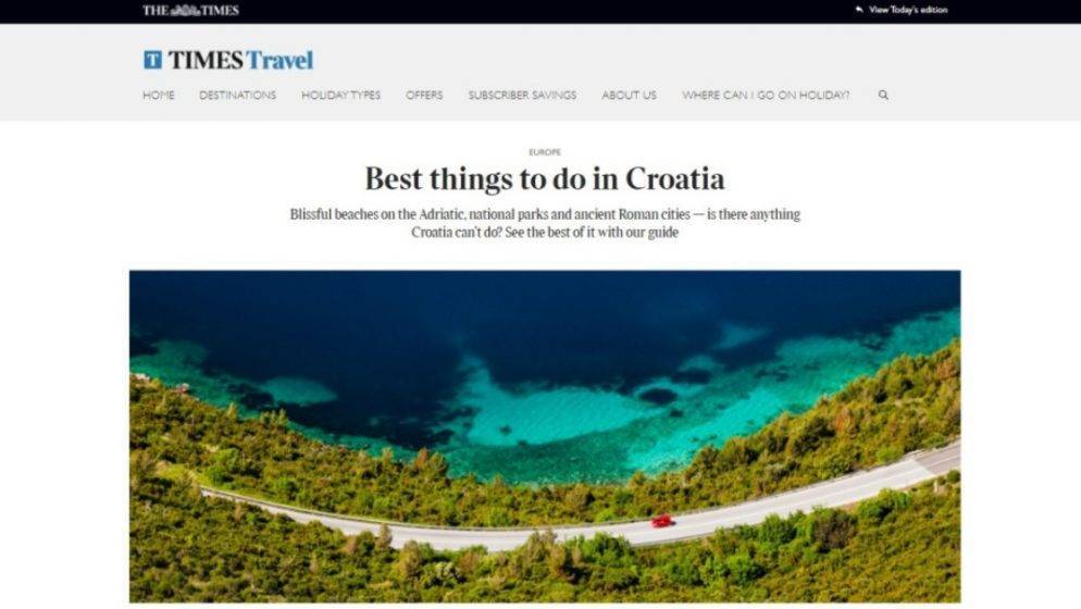Tako je britanski The Times objavio detaljnu reportažu novinara Jamesa Stewarta, koji je prikazao raznovrsnost Hrvatske kroz odabir 21 aktivnosti u 21 destinaciji širom zemlje. U objavi se ističe bogatstvo hrvatske kulturne i povijesne baštine, eno-gastronomija, prirodne ljepote te luksuzna ponuda dostojna očekivanjima i najzahtjevnijih posjetitelja. Među brojnim destinacijama i aktivnostima ističe se opis Hvara kao jedinstvenog spoja francuske rivijere i Mediteranskog blještavila, unutrašnjost Istre opisana je kao idealna destinacija za gurmane, bogatstvo netaknute prirode otoka Brača, Pašmana, Kornata i Murtera prate prekrasne fotografije, a prikazana je i hrvatska kontinentalna ponuda te još mnogo toga.