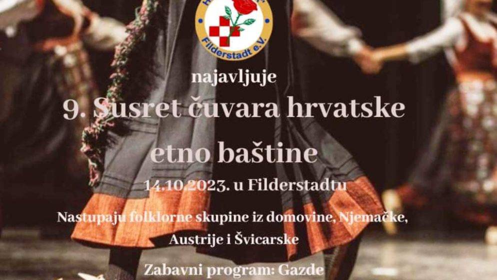 U Filderstadtu u Njemačkoj, 14. listopada, održat će se tradicionalni 9. Susret čuvara hrvatske etno baštine, u organizaciji HKUD-a “Ruža”.