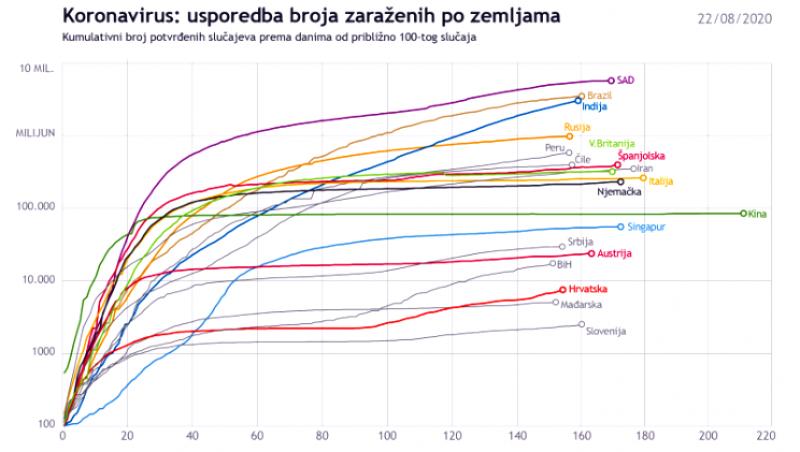 Na svjetskoj razini, broj zaraženih u nedjelju je prešao 23 milijuna kao i 800.000 umrlih. Latinska Amerika i Karibi imaju više od 255.000 umrlih.