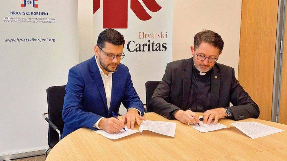 ‘Sa zadovoljstvom javljamo da je Udruga useljenika hrvatskog porijekla – Hrvatski korijeni uspostavila partnerski odnos s Hrvatskim Caritasom! Danas smo potpisali ugovor o pružanju potpore doseljeničkim obiteljima hrvatskog podrijetla u hrani, odjeći, lijekovima i zdravstvenom osiguranju.