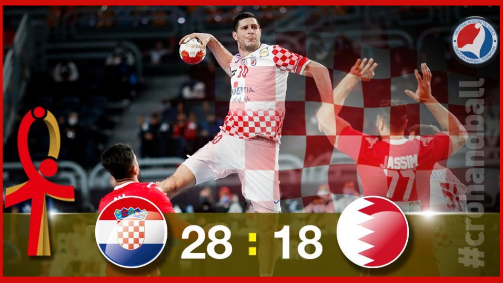 Hrvatska muška rukometna reprezentacija u susretu je 1. kola skupine II drugog kruga natjecanja na Svjetskom prvenstvu u Kairu svladala Bahrein sa 28-18 (13-8).