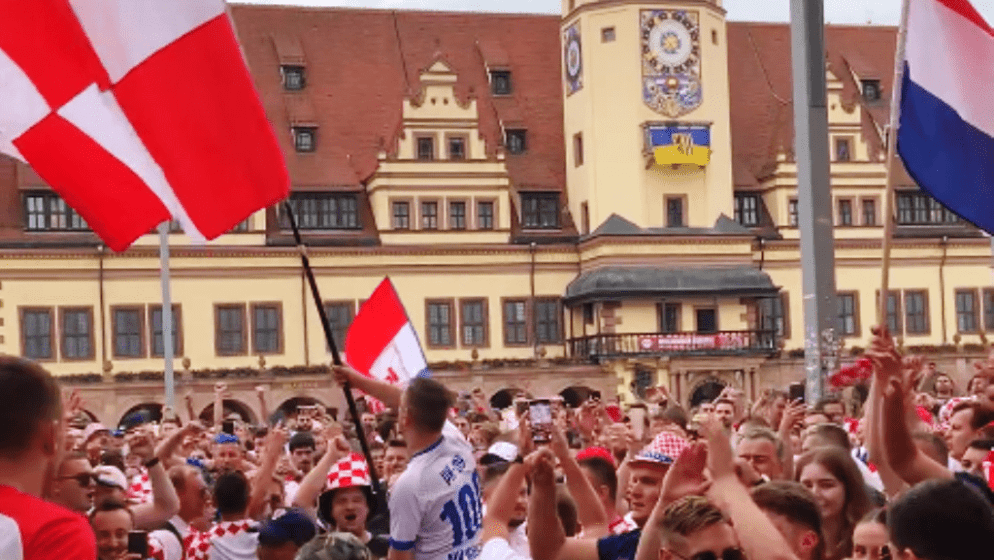 Dva najpoznatija trga, Augustusplatz i Marktplatz bila su obojena u kockice, a lokali su bili ispunjeni hrvatskim navijačima.