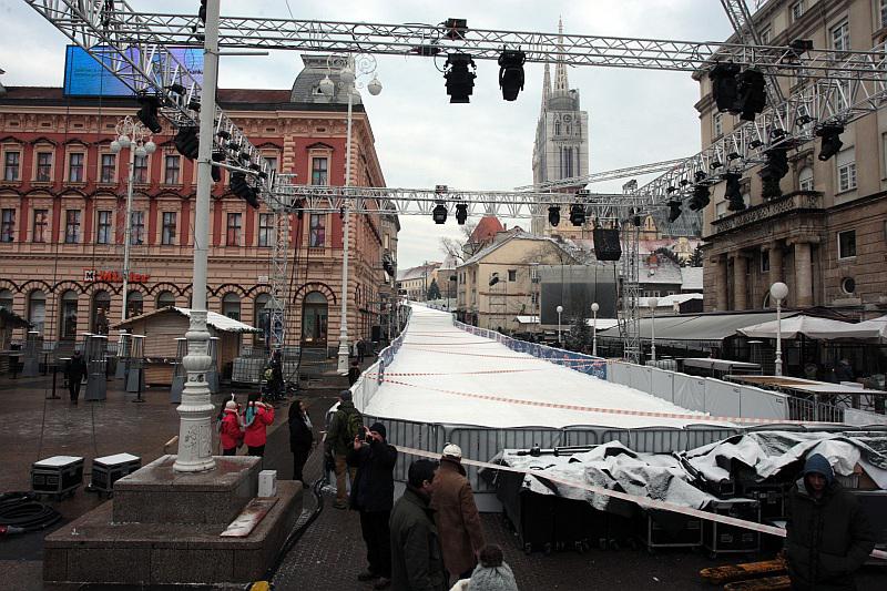 Središnji zagrebački gradski trg priprema se za ‘Utrku legendi’ kojom će biti proslavljena 50. godišnjica FIS Svjetskog skijaškog kupa, a na kojoj će sudjelovati i proslavljeni hrvatski skijaši, Janica i Ivica Kostelić. Tom prigodom u centru grada napravljena je ni više ni manje nego – skijaška staza!