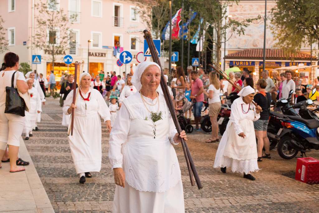 Drugi dan, u subotu, će se uzduž promenade održavati sajam tradicijskih i eko proizvoda (proizvodi od lavande, med, drvene i kožne rukotvorine, pletene torbe i ukrasi…), kao i mimohod sudionika, a na Polači će biti predstavljene tradicionalne vještine i običaji poput pranja robe na perilu, šivanja na starinskoj šivaćoj mašini, pletenje ribarske mreže…. Toplu ljetnu večer dodatno će uljepšati nastup klape „Tić“. Na trgu će se u večernjim satima prezentirati tradicionalna mlaća slame i plesati selačko kolo. Običaj mlaćenja slame star je više od 150 godina, a potekao je iz maškaranih običaja – žene mlate slamu u svojim radnim narodnim nošnjama, potom ju zapale, a okupljeni otplešu dva tradicionalna plesa oko vatre, Hrvacki i Kolunati.